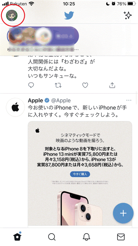 01.左上にあるあなたご自身のアイコンをクリック