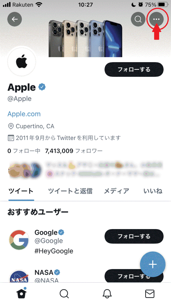 06.リストの中にいれたいユーザーのページへ行きます。右上の「・・・」を押します。